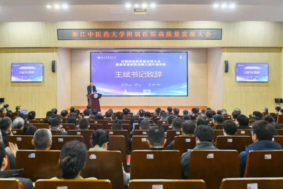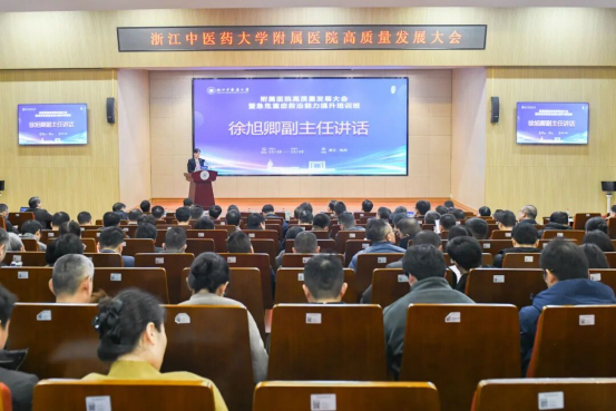 徐旭卿指出,在省委、省政府的坚强领导下,省卫生健康委、省中医药管理局深入学习贯彻习近平总书记关于中医药工作的重要论述,一张蓝图绘到底,一任接着一任干,获批首批国家中医药综合改革示范区,推动我省中医药事业实现历史性跨越,浙江中医药大学和附属医院为此作出了重要贡献。她强调,要坚守公益初心,在彰显“三性”底色上率先垂范;要聚力核心能力,在中医优势专科上树立标杆;要强化创新驱动,在“四维”赋能上寻求突破;要夯实学科人才根基,在可持续发展上提供坚强支撑。希望浙江中医药大学和附属医院以本次会议为新起点,推进一流中医药大学建设和医院高质量发展,谱写我省中医药事业现代化发展崭新篇章,为健康浙江建设贡献更大的智慧和力量。