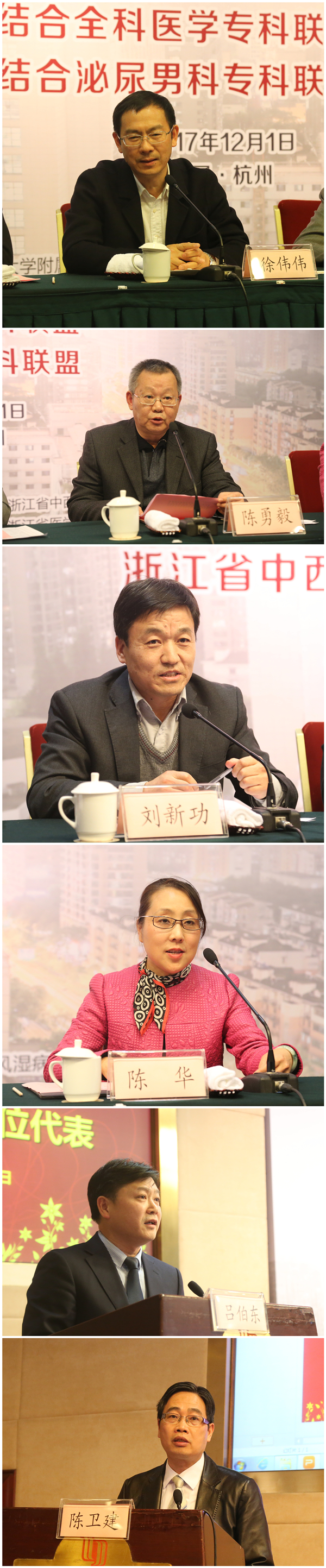 一花独放不是春,百花齐放春满园。为响应《国家卫生计生委关于开展医疗联合体建设试点工作的指导意见》文件精神与省委、省政府“双下沉,两提升”工作部署,实现提升基层医院的专科诊治能力,让浙江省内各地患者都能获得高效、便捷、同质化的医疗服务,12月1日,由浙江省新华医院发起组织,全国名中医、国家临床重点专科风湿病科带头人范永升教授,浙江中医药大学副校长、国家中医药管理局重点学科全科带头人李俊伟教授,浙江省新华医院院长、国家临床重点专科泌尿男科带头人吕伯东教授共同牵头,联合省内10个地级市、223家医疗机构,分别成立了浙江省中西医结合(中医)风湿病科专科联盟、浙江省中西医结合全科医学专科联盟,浙江省中西医结合泌尿男科专科联盟。