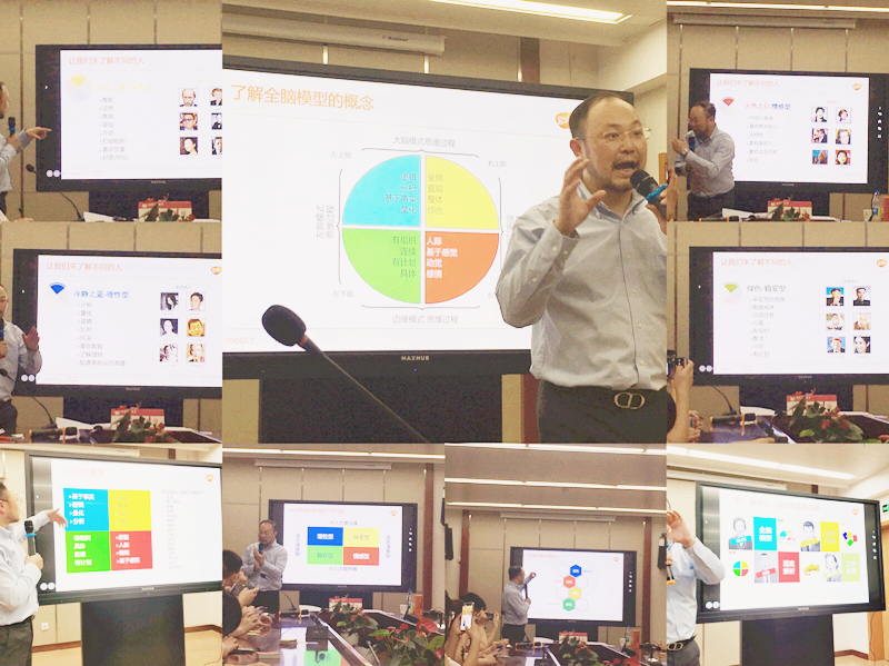 药剂科黄笑夏主任主持会议,她提出药剂科工作人员需要不断提高自身的沟通能力。朱斌老师通过讲解全脑模型、差异体验、适应解析、工作应用四个模块,与大家分享了医患沟通中色眼识人的重要性。互动环节中,药剂科工作人员通过卡片对自我性格进行测试:红色热情型,蓝色冷静型,绿色稳妥型,黄色探索型,了解自己的性格特点,可以更好地在实际工作中正确处理医患关系;分组设计团队活动中,大家集思广益,一个个方案精彩呈现,朱斌老师逐一点评,在欢声笑语中药剂科工作人员都收获颇丰。