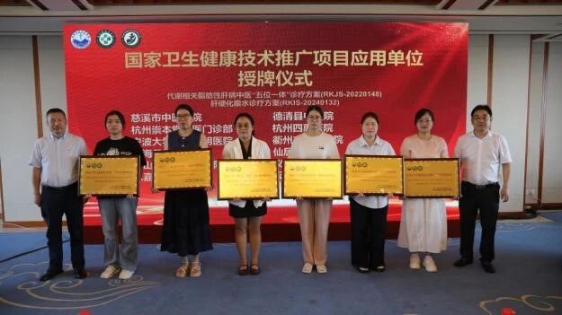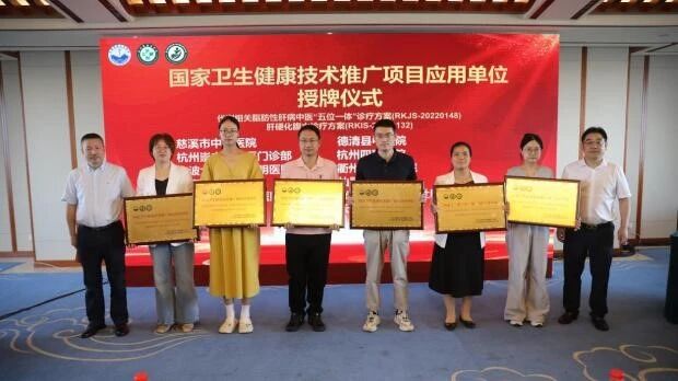 开幕式上举行了国家卫生健康技术推广项目应用单位授牌仪式。我院肝病科牵头实施的两项国家级推广示范项目:《代谢相关脂肪性肝病中医“五位一体”诊疗方案》《肝硬化腹水诊疗方案》,已先后在12家医疗单位进行推广应用,将进一步助力提升基层肝病诊疗水平,让更多肝病患者受益于优质的中西医结合诊疗技术。